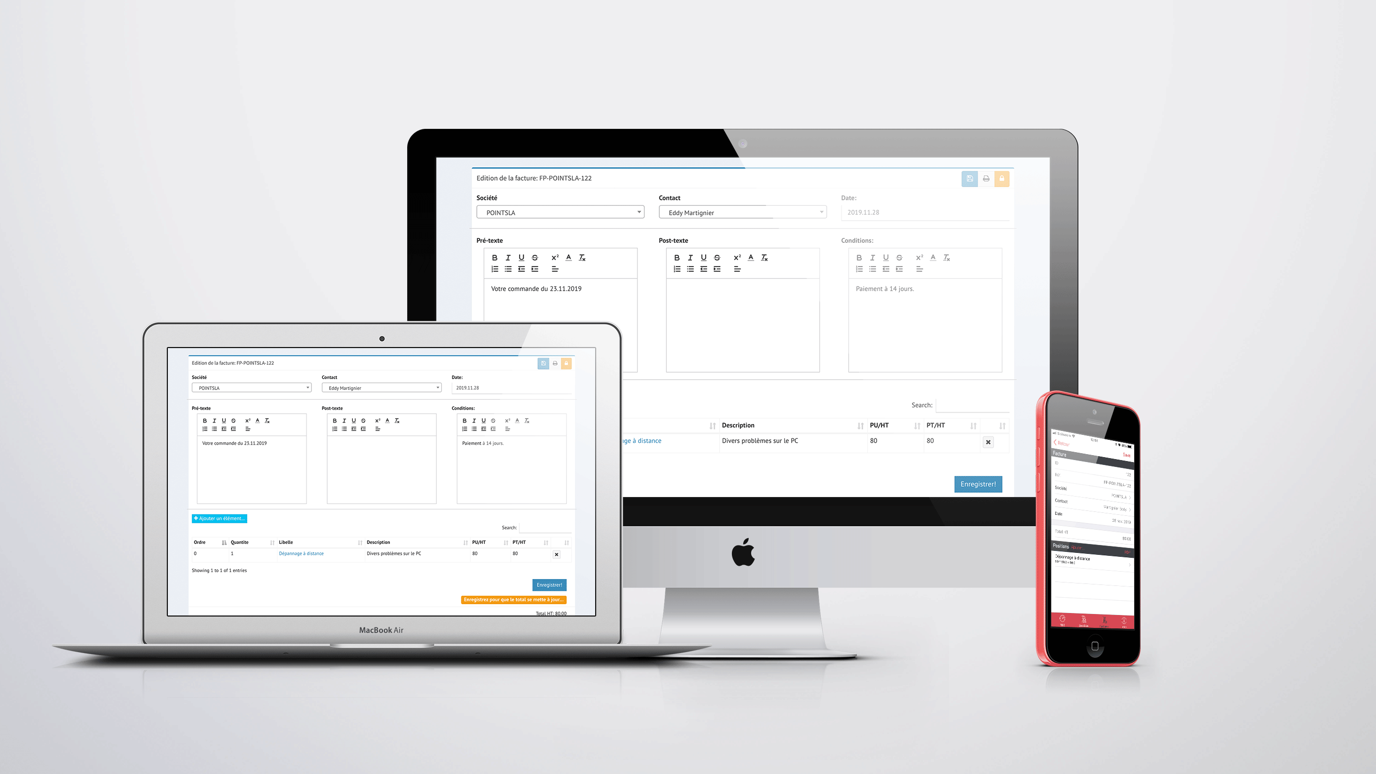 Une web app sécurisée pour vos factures. Créez vos factures avec les spécifications qui vous sont propres. Génération automatique des PDF. Vision du chiffre d'affaire. Suivi des encaissements. Une app iOS est également disponible pour une mobilité accrue.