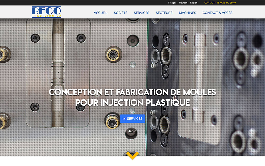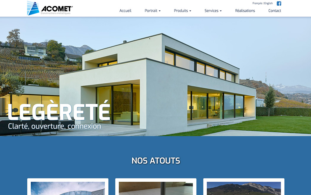 Création du site et design, responsif, gestion personnalisée des réalisations, multilingues.